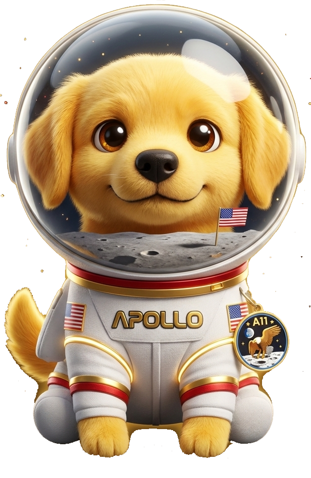 Apollo wasn't born in a lab. He was born in a dream — a tiny golden plush puppy strapped into a cardboard cockpit, dreaming of orbits beyond his backyard.